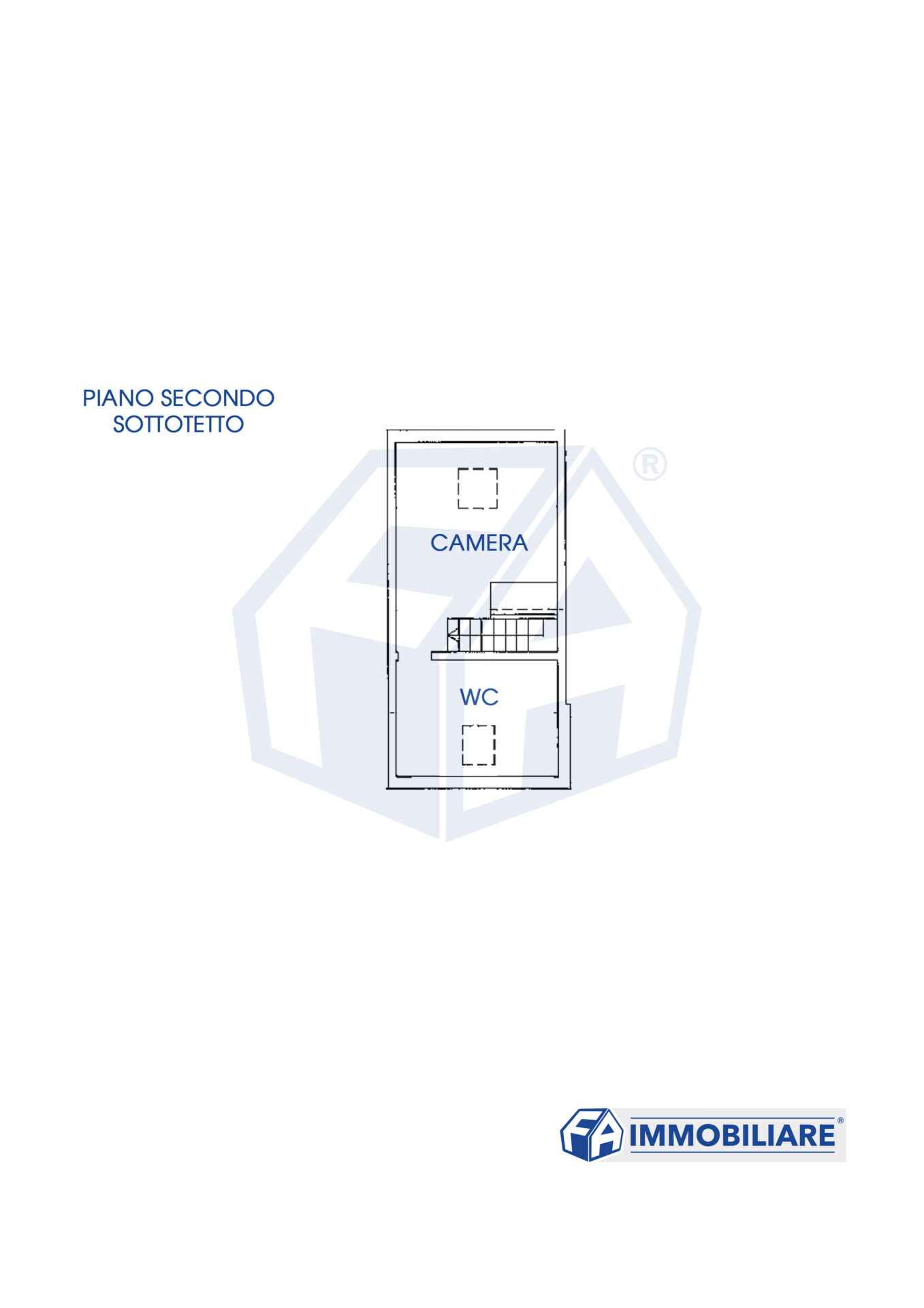 Piano secondo sottotetto: 40mq mansardati composti da camera e bagno.